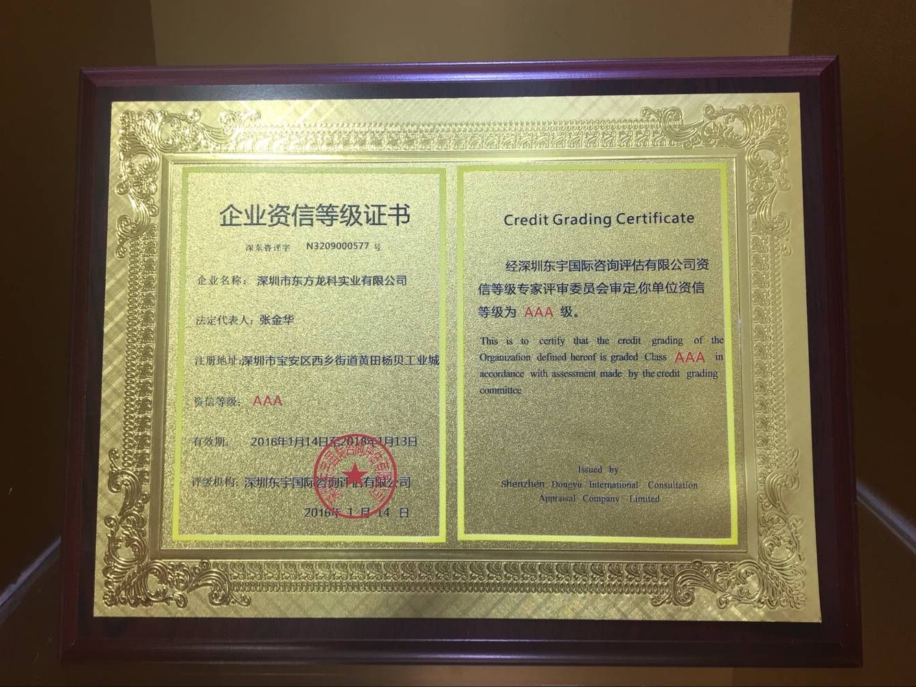 企业资信等级AAA证书