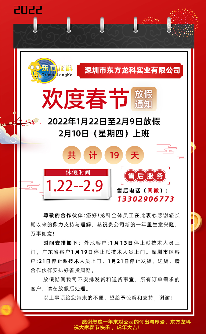 东方龙科2022年春节放假通知